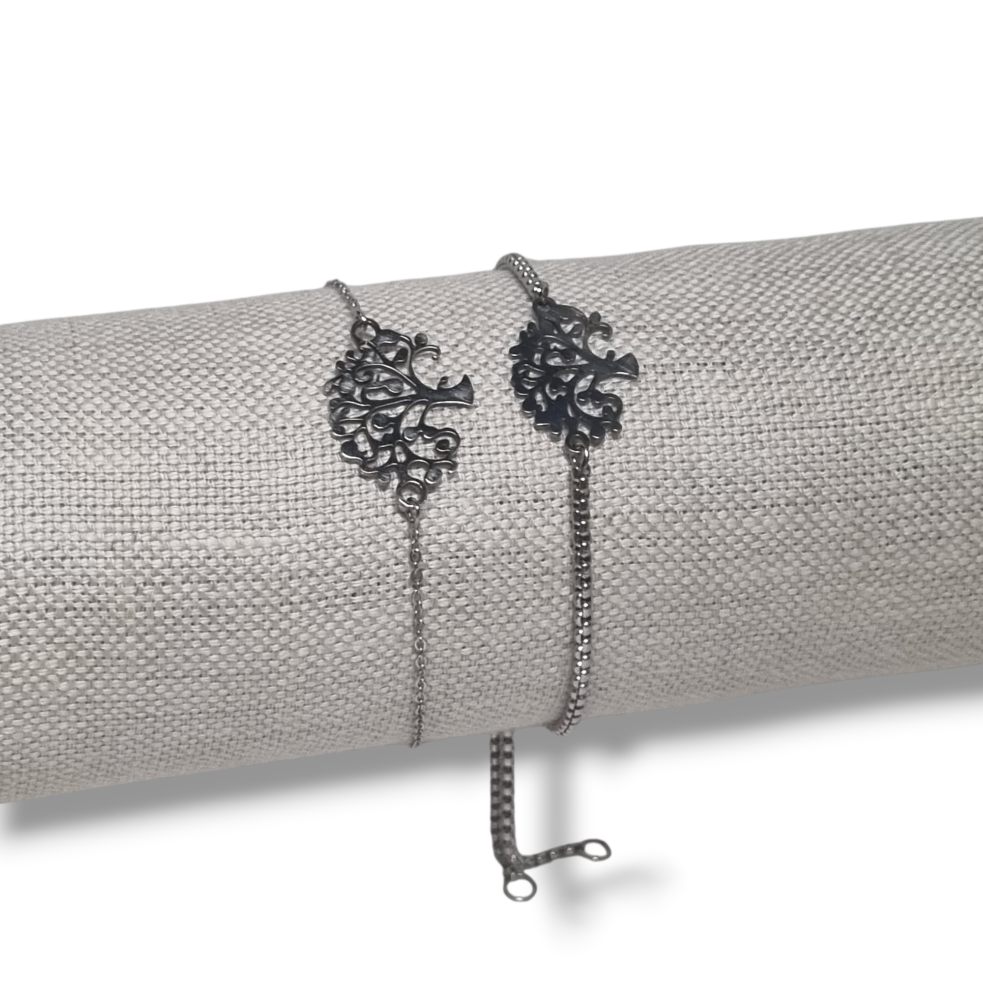 Bracelet arbre de vie fin femme en acier inoxydable. Bijou minimaliste, élégant et symbolique, disponible en chaîne ou ajustable.