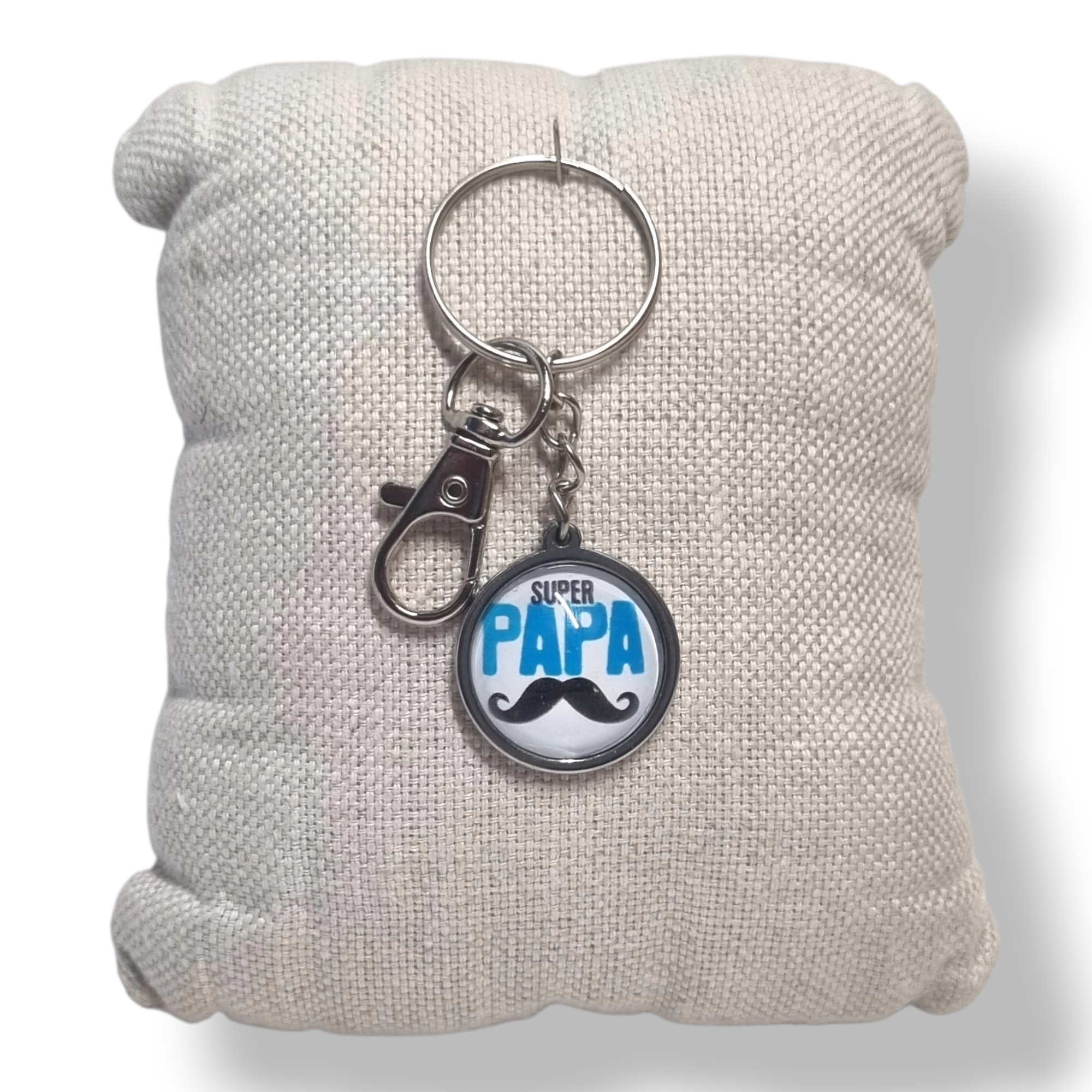 Offrez un message plein de style et d’humour avec ce Porte-clé « Super Papa » – Motif moustache. À la fois pratique et symbolique, il met à l’honneur les papas avec une touche originale et tendance. Son design avec motif moustache, protégé par un cabochon en verre, apporte brillance et résistance pour un usage quotidien.